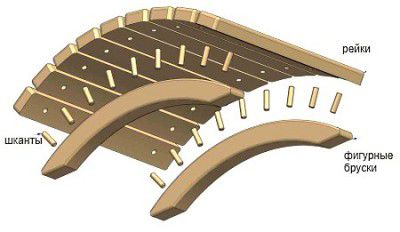 Соедините верхние концы всех пяти стоек при помощи доски. Для скрепления элементов используйте саморезы.