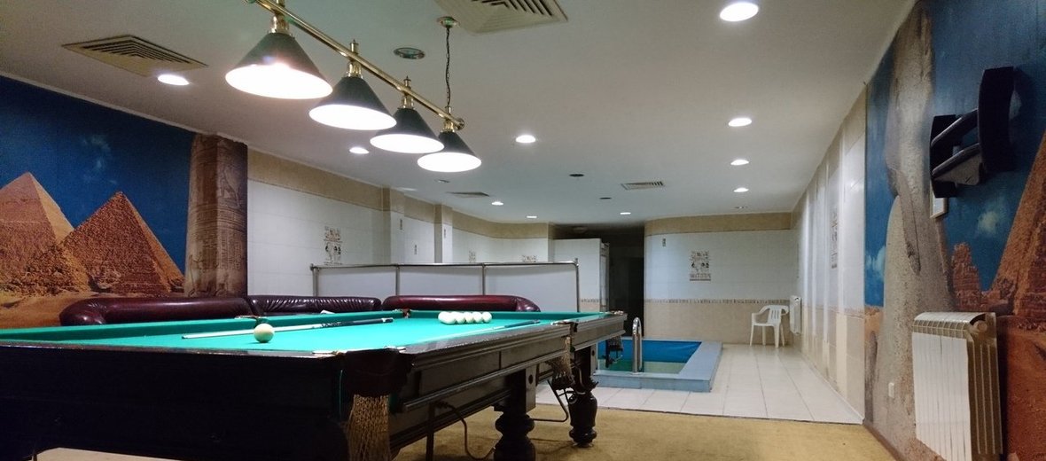 Не хочется в бассейн? Не беда! Вместо этого можно передохнуть в нашей комнате отдыха. Мы ставили своей целью создать здесь уютный, практичный интерьер из преимущественно натуральных, безопасных материалов, подобрать мебель, которая будет в равной степени удобной и эстетичной. Надеемся, что он придется вам по душе! Для поддержания атмосферы отдыха мы можем предложить вам бильярд, кальян и караоке. Также у нас имеется бар, а при необходимости вы можете принести и собственную еду — мы не возражаем! Главное помните, что плотная трапеза незадолго перед посещением парной — это не самая удачная идея, по мнению терапевтов. А вот после парной она совсем не повредит!