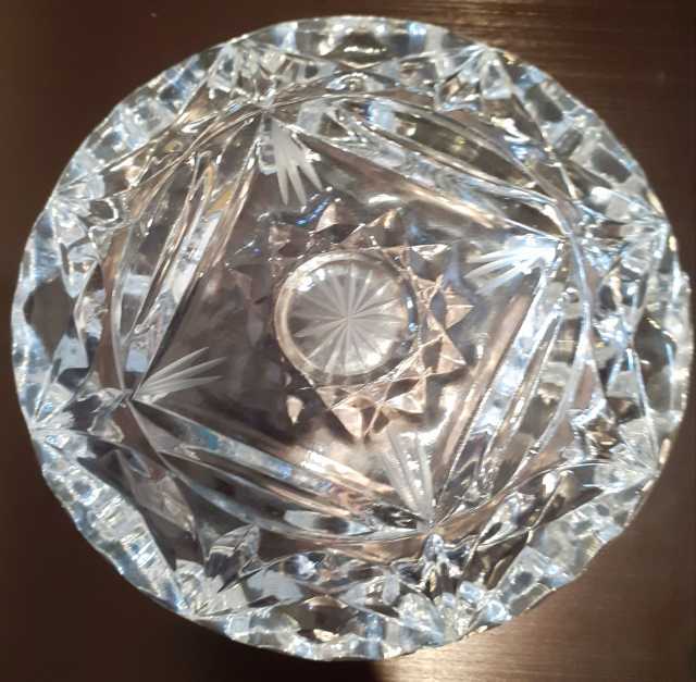 Продам хрустальную пепельницу в хорошем состоянии. СССР Вес 940 гр. Диаметр 16 см (в самой широкой части). Красивая многогранная, толстостенная. Пересылка возможна.