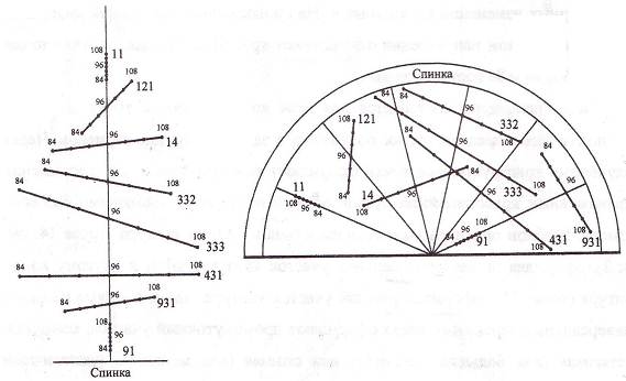 Цифровую информацию для выполнения градации формируют в виде графических схем (рис.1) или представляют в табличной форме (таблица 1). Графическая СГ содержит информацию о величине и направлении перемещения конструктивных точек детали при переходе от исходного размера (роста) изделия к изделию смежного размера (роста).