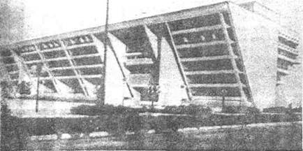 Как обычные вертикальные, так и обратные уступы создают условия для изменения жесткости и концентрации напряжений; что касается соответствующих характеристик общей формы, то их воздействие различно. Например, при замене одного большого уступа несколькими меньшего размера, или при придании трапециевидной формы зданию с обычным вертикальным уступом, можно сгладить те сложности, которые возникают при резком изменении жесткости. Однако для здания с обратным уступом такая замена только создаст дополнительные трудности, так как наиболее целесообразно центр массы здания или центр тяжести по возможности приблизить к уровню грунта. Действие сил на более низком уровне означает меньшую длину плеча силы, а следовательно, и меньший опрокидывающий момент. Обычный вертикальный уступ или пирамидальная конфигурация распределяет массу здания правильно, в то время как при наличии обратных выступов распределение массы происходит вразрез с основными расчетными критериями. В здании, имеющем форму перевернутой пирамиды, происходит уменьшение массы на единицу высоты здания по направлению к поверхности грунта, что не соответствует оптимальности конфигурации зданий для сейсмостойкого строительства.