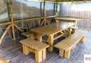 Коттеджи базы построены из натурального дерева сосны и осины, территория возле коттеджей огорожена и благоустроена.