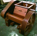 Принцип работы: Рабочим органом щековой дробилки служат две дробящие поверхности — щеки, неподвижная и подвижная. Материал, поступая сверху через загрузочное отверстие, заклинивается между щеками и при надавливании на него подвижной щеки раздавливается.