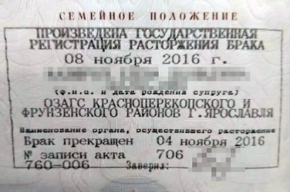 Штамп о расторжении брака, соответственно, показывает дату развода и при утере свидетельства о расторжении брака позволяет без хлопот сделать дубликат этого документа.