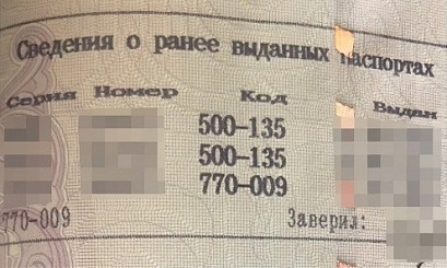 Штамп о загранпаспорте и ранее выданных российских паспортах. Отметку с информацией о ранее выданных российских паспортах ставят при замене паспорта, а о заграничном паспорте — при его выдаче. Штампы ставят на 18 и 19 страницах с помощью мастичного оттиска или специального принтера.