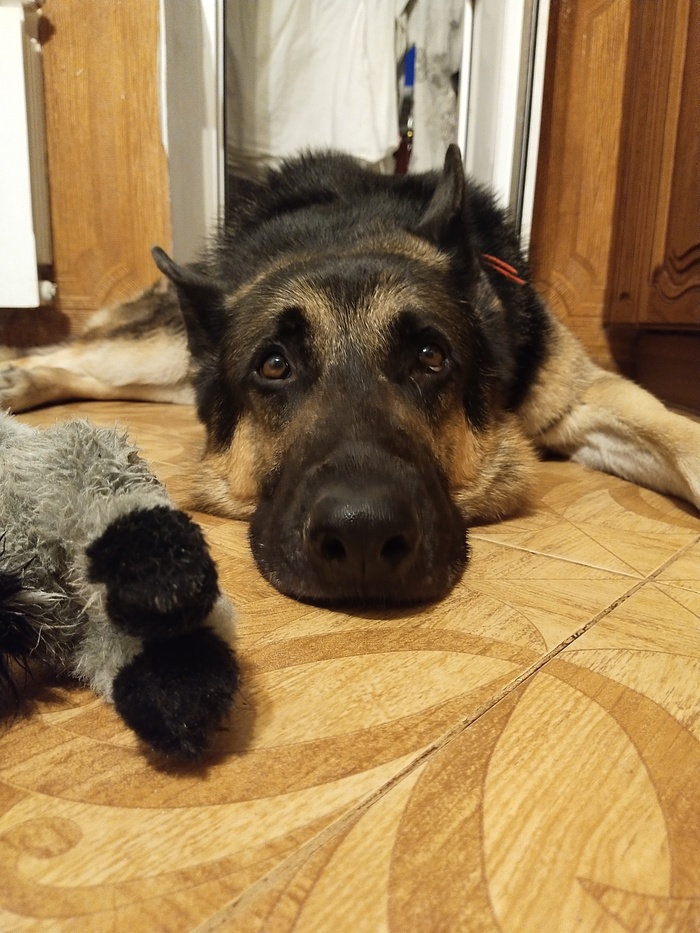 Знакомьтесь! Его зовут Арс. Он 7 лет послужил в МВД (искал наркотики), списан из-за артроза, проще говоря, после нагрузки, ему тяжело ходить. Даже встаёт с трудом. + если нет шаговой нагрузки становится хуже. Но это уже лирика.