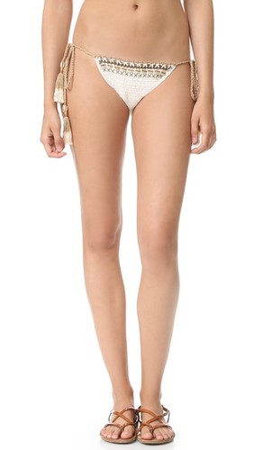 Ажурные плавки бикини She Made Me, украшенные вышивкой и бусинами из ракушек пука. Завязки с кисточками завязываются спереди. Подкладка из джерси. 100% хлопок. Ручная стирка. Импортируется из Индонезии