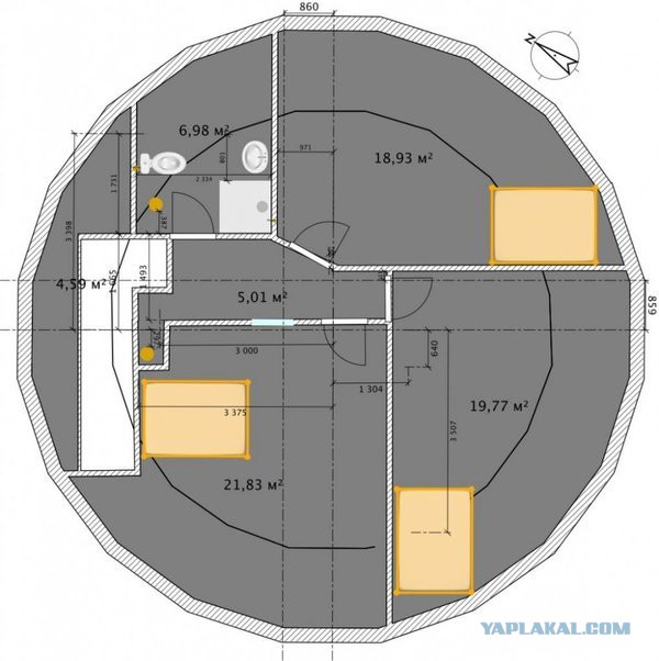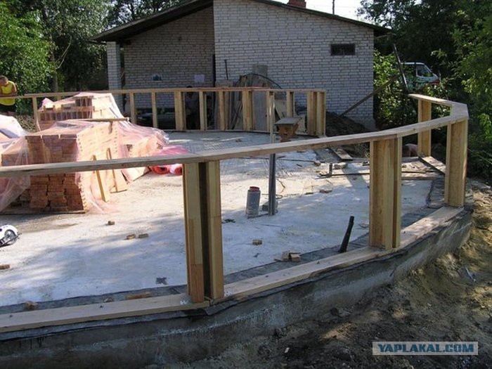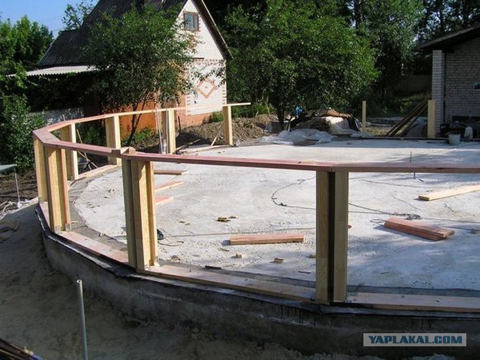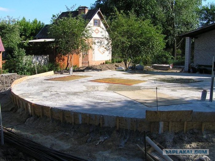 Фундамент не круглый, это многоугольник он повторяет основание геодезического купола и состоит из 20 секторов.