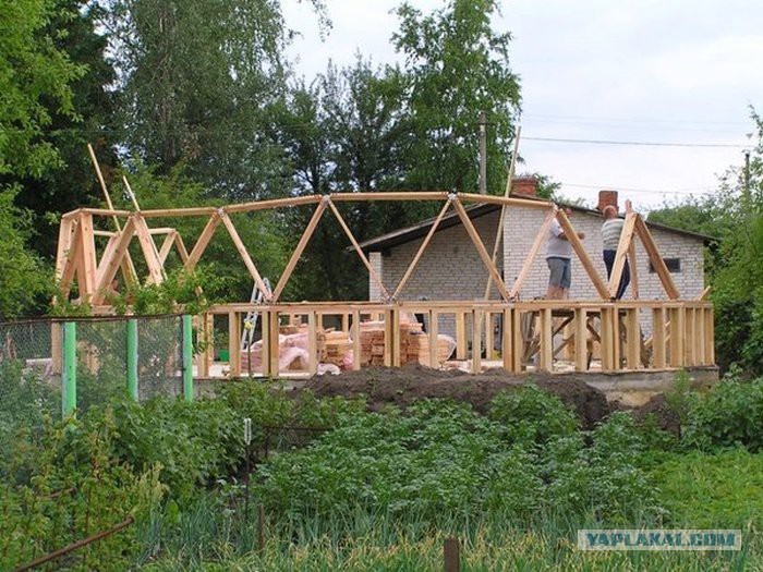 Необычный вид- это конечно сильное преимущество и я тоже подумывал о таком, но потом представил как я буду крышу крыть или ремонтировать- и отказался от такого варианта.