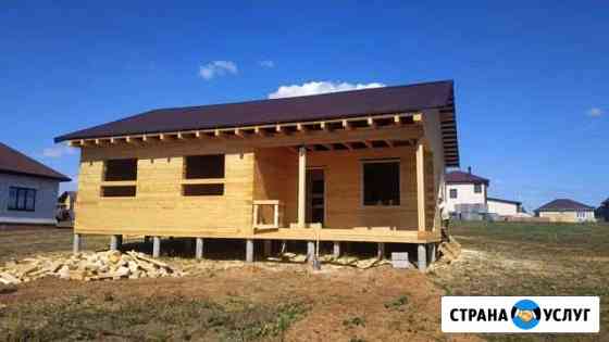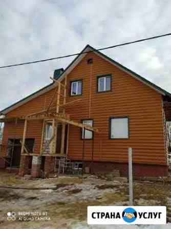 Бригада рабочих выполнит следующие виды работ: строительство домов, бань «брус, каркас». Внутренняя и наружная отделка «сайдинг, вагонка». Крыша любой сложности, а так же водоснабжение, отопление, электрика.