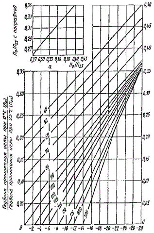 2. При \(\frac<П_0><П_<25>>\) равном или большем 0,27, его значение необходимо брать с поправкой по графику (а).