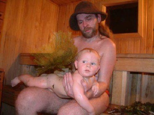 Ребенок в бане с раннего возраста