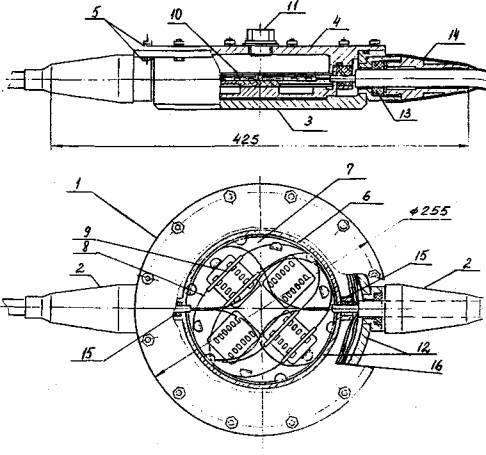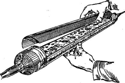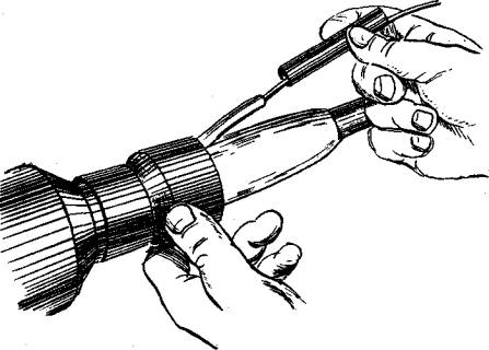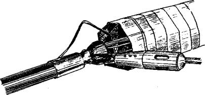 7.13.3. Стеклостержни укоротить до длины 100-150 мм. На концы каждого стеклостержня спрессовать металлическую гильзу. Соединенные стальные проволоки или стеклостержни уложить между камерой и корпусом.
