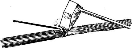 Залуженные концы жил кабеля соединяют с залуженными концами стальных проволок внахлест и стягивают бандажом из медной луженой проволоки диаметром 0,9 или 1,2 мм (см.рис.8.6).