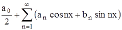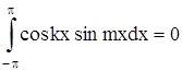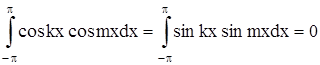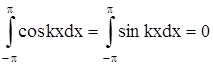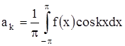 Теперь можем вычислить коэффициенты Фурье ak и bk ряда (2). Для разыскания коэффициента an при каком-либо определенном значении n≠0 умножим обе части равенства (2) на cosnx и произведя математические операции в пределах от –π до π, получим: