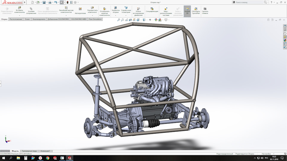 Затем, самое главное — это чертежи. Если не разработать машину в чертежах полностью, лучше вообще не начинать. Я начал собирать без чертежей, просто по фото, и каждый узел переделывался минимум 3 раза (задняя подвеска вообще 4 раза переделывалась), и хотя дело движется уже к покраске, все равно какие-то переделки да будут. Чертить проще всего мне кажется в Solidworks. Хоть сейчас уже не плохо черчу, все равно багги полностью не прочертил, только не много расчеты подвески, любой другой проект связанный с техникой, без чертежей начинать не буду.