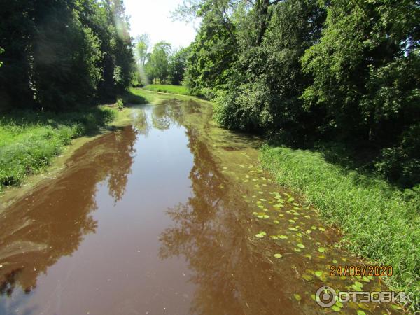 Да, а от самой усадьбы писателя, повторюсь, ничего не осталось, со временем здание превратилось в руины, и было снесено незадолго до Первой Мировой. Напротив памятника и городской администрации мы увидели довольно симпатичный пруд, украшенный немного нелепой скульптурой.