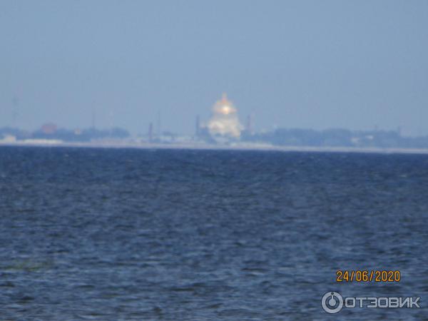 Если присмотреться (ну или увеличив зум на своём фотоаппарате), то можно увидеть отсюда и силуэты Кронштадта, в частности бессмертное творение Василия Антоновича Косякова, Никольский Морской собор. Относительно недавно я показывал его вид с противоположной стороны залива, из сестрорецкого парка «Дубки», да и о самом соборе рассказывал в своё время.
