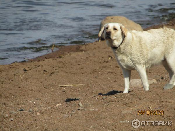 Облюбовали эту пляжную зону и домашние животные, чувствующие себя здесь весьма вольготно, как вот этот, к примеру, пёс.