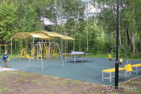 А это тренажеры под открытым воздухом. Классная задумка! Очень много различных установок для проработки групп мышц.