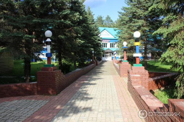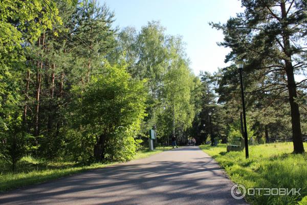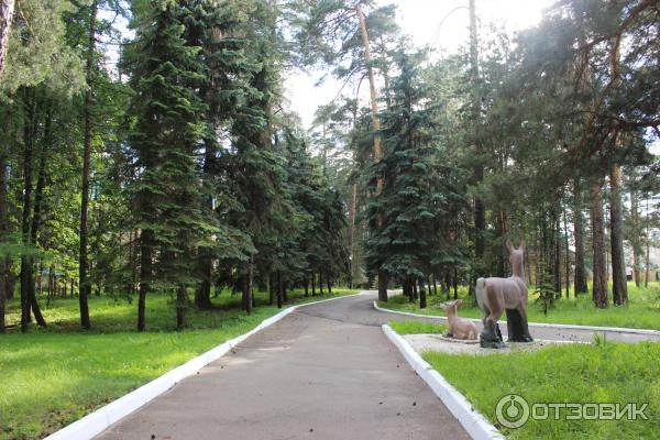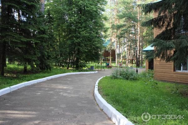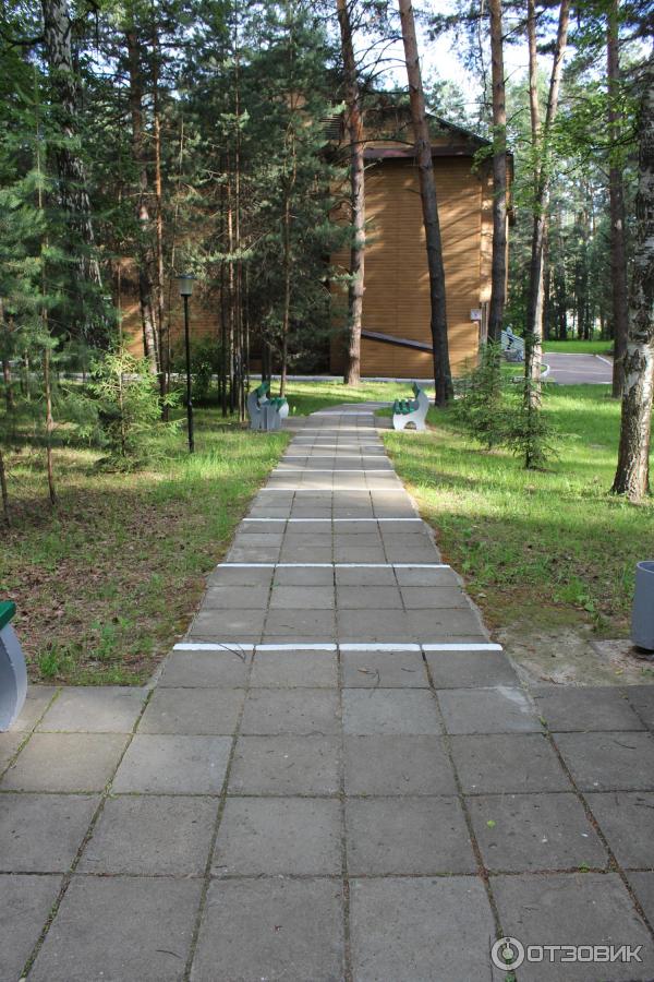 Вокруг много зелени, огромные сосны, в целом все выглядит очень симпатично и ухоженно. Асфальт, кстати говоря, по всей территории санатория новый. Детям на самокатах и великах кататься одно удовольствие!