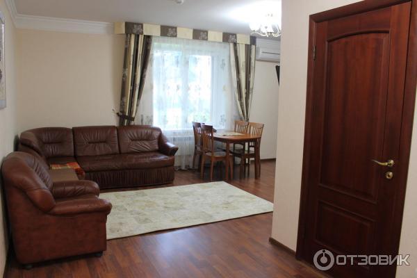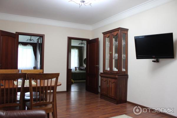 Мы забронировали номер «Апартаменты Бизнес», трехкомнатный, общей площадью 100 кв. метров.
