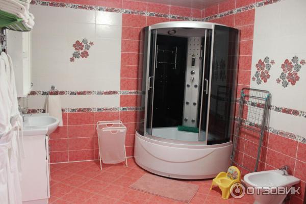 Санузел совмещенный, очень большой! По ощущениям, не менее 15-16 кв. метров. Душевая кабинка очень понравилась, особенно подсветка, радио и прочие подобные фишки.