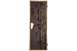 Дверь для бани-бочки под ключ и сауны Tesli Бамбуковый лес 1900 х 700 Конструктивные особенности: 1. Полотно изготовлено из 8мм закаленного стекла (сталинита) с рисунком.