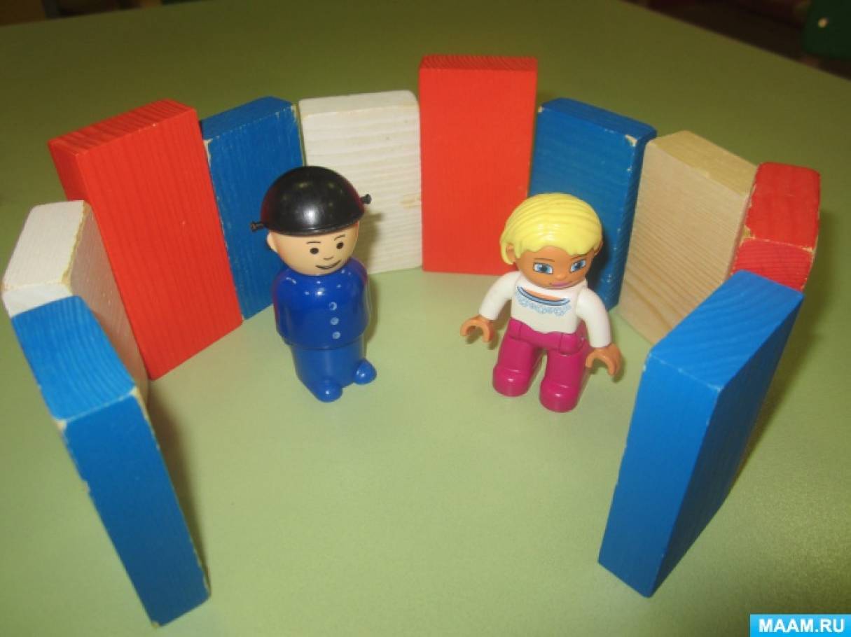 Покажите ребенку образец того, что надо сделать, и покажите, как построить такую конструкцию из деталей.