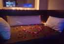 Вас ждёт мини бассейн с гидромассажем, подсветкой и лепестками роз, тропический дождь, финская парная, травяной хамам, игристое шампанское и фрукты, тихая романтическая музыка, приглушённый свет, свечи — волшебная сказка о любви! Откройте дверь в эту сказку!