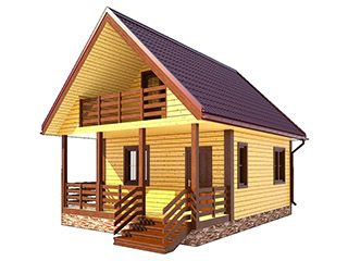 Дачный дом с верандой, террасой и мансардой 8х8 м
