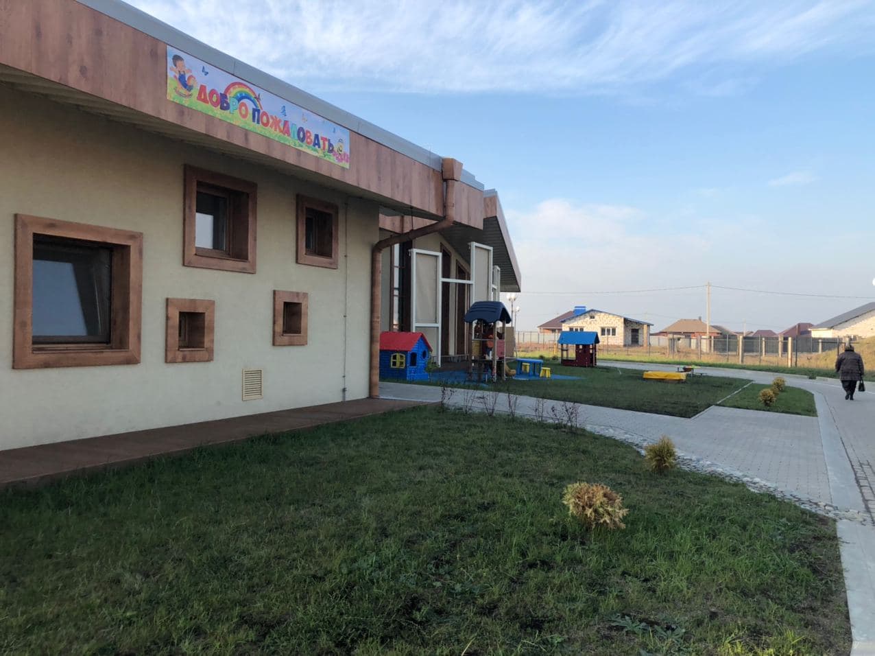 На территории детского сада есть физкультурная площадка с безопасным покрытием и спортивным оборудованием, горки, песочницы, а также стационарная площадка для изучения ПДД с дорожной разметкой. В следующем году планируется обустройство метеоплощадки и учебно-опытного участка. Рядом достраивается начальная школа на 100 мест.