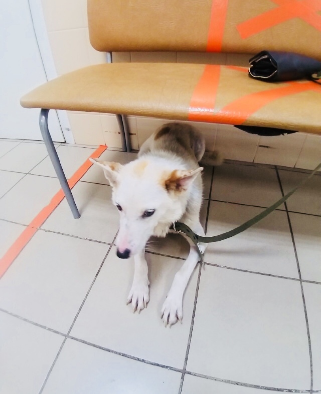 Сейчас собака на стационаре. Очень спокойная, без агрессии.