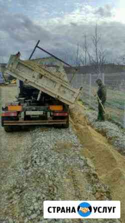 Доставка песка жёлтого, серого, крупнозернистого, щебня бетонного, дроблённого Белореченского, щебня мергель и мурового разных фракций, других материалов по заказу от одного куба Японскими мини самосвалами. Услуги строительной техники : экскаваторов от 3 до 8 тонн, погрузчиков ( мини ).