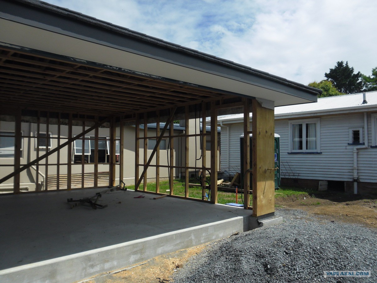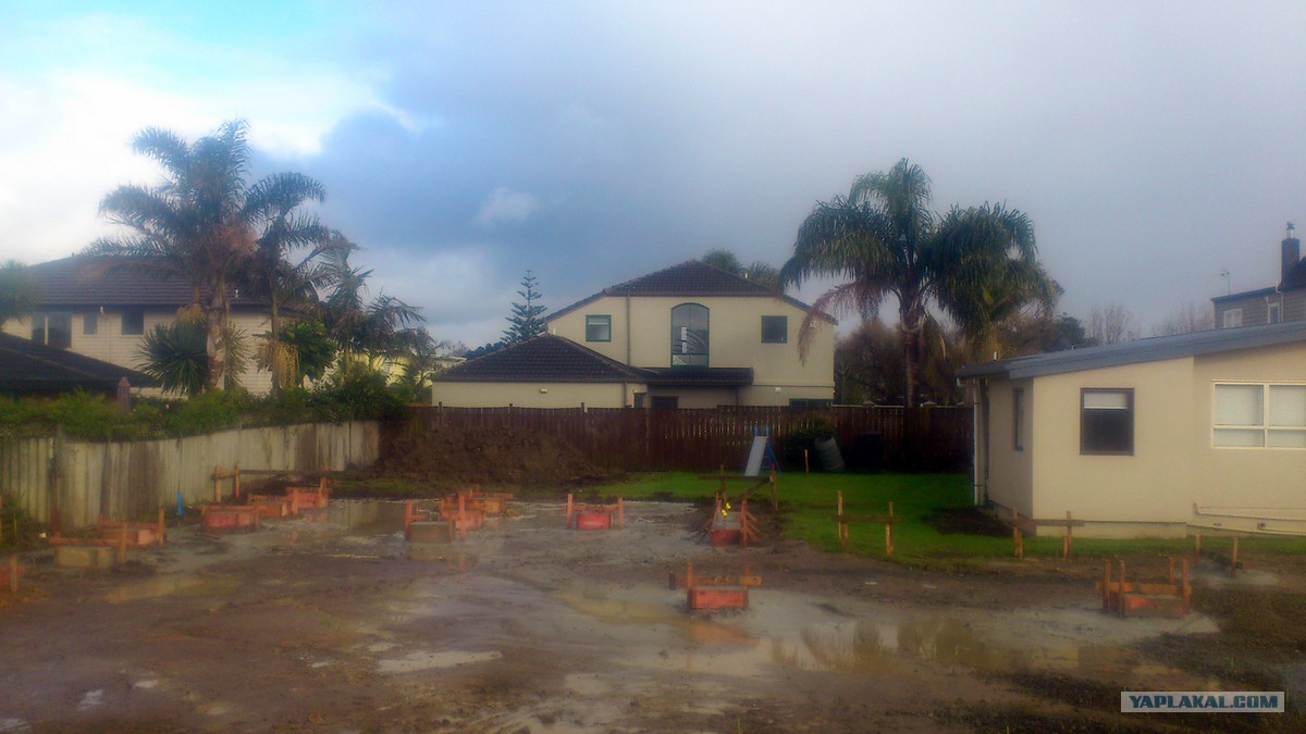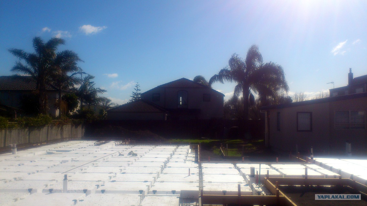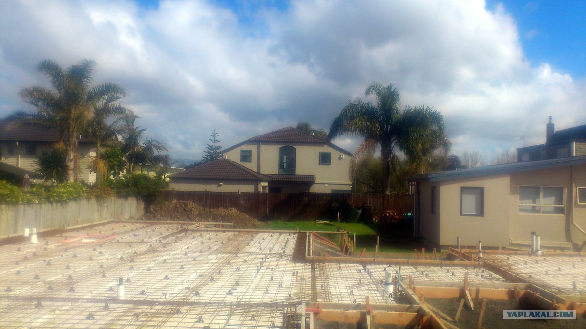 В общем, уже последний день июля, дом практически готов, но сосед так и не переехал пока. Долго ждал бетон. Оказывается, после заказа нужно ждать 3 недели, так как весь бетон расписан. Слишком город (Окленд) быстро растет.