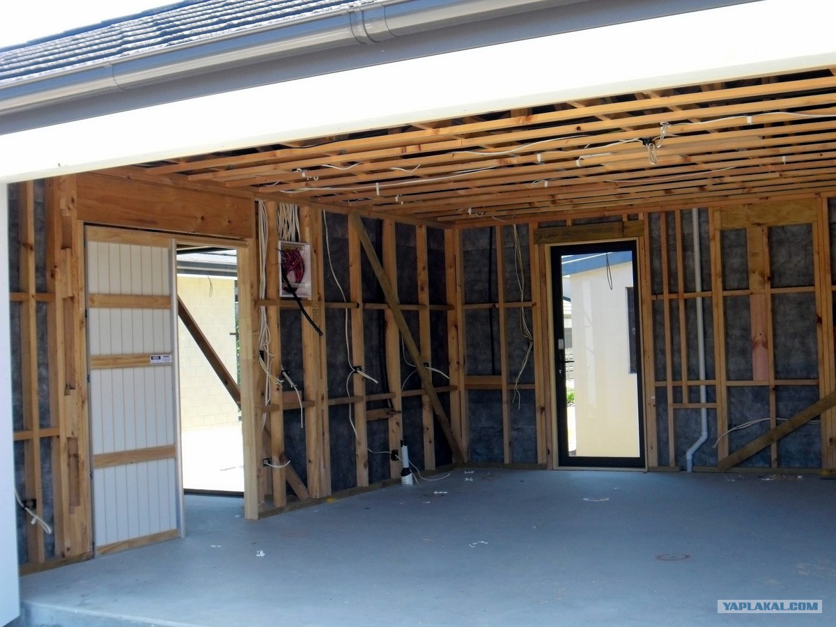 Потом изнутри все закрывается гипсокартоном. Кстати, очень популярный бизнес для русских, которые не говорят по английски. И маляры у соседа русские работали. Матерились сильно, пока я не попросил сдерживаться, а то перед женой и дочкой не удобно.