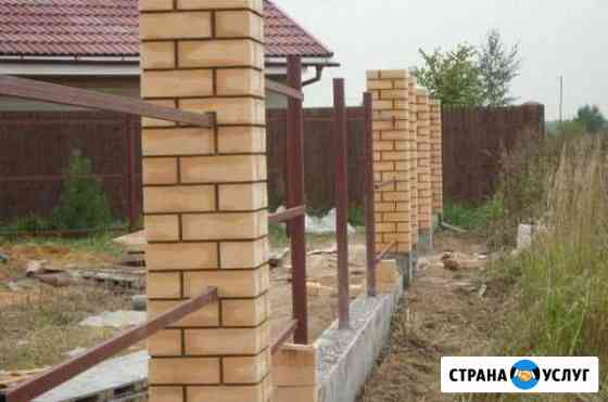 Строительство домов из кирпича и блока, цоколь, кладка заборных столбов.