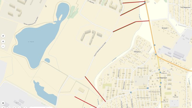 Проанализировав карту района, хотим предложить Вам рассмотреть возможность, согласовать и ввести в работу в ближайшее время альтернативную дорогу, которая поможет жителям Марусино в транспортной доступности.