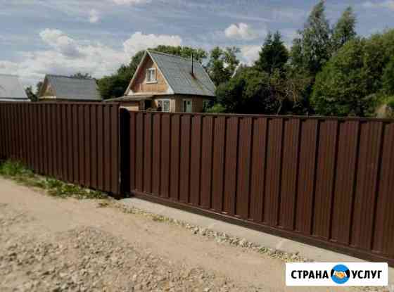 Монтаж заборов любой сложности. Профлист, металлический штакетник, дерево, кирпич. Откатные, распашные ворота с автоматоматикой. Монтаж под ключ. Договор, гарантия, разумные цены, опыт работы. Монтаж металлических конструкций ( гаражи, ангары и т. д.)