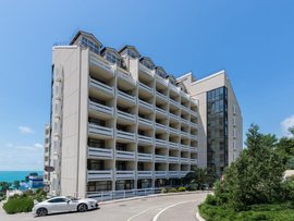 Комплекс на 60 квартир построен в 2013 году на бывшей территории советского санатория, от которого остались цветущие сады. До моря – 15 минут пешком с горки. В состав комплекса входит фитнес-центр, салон красоты и частный детсад «Изумрудный город», где можно оставить ребенка на день (1600 руб.), на час (300 руб.), или отвести на индивидуальные занятия с психологом, логопедом, учителем (500 руб./45 мин.).