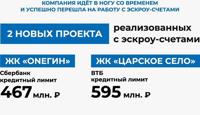 Он добавил, что в 2019 году компания полностью перешла на эскроу-счета, что упрочит доверие между застройщиком и клиентом.
