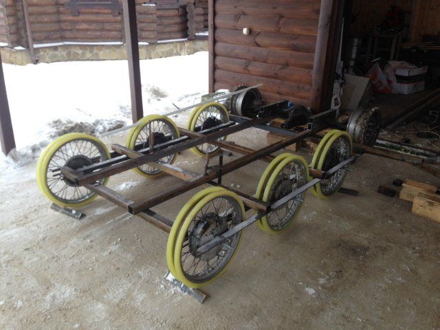 6) Катки сделаны из спаренных промышленных колес d=250 мм.