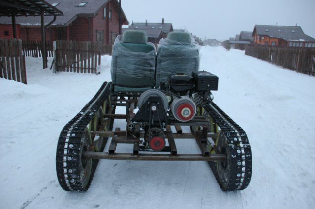 Тестирование. Пробег пока совсем небольшой (примерно 5 км), в том числе по заснеженному полю, гусеница ни разу не слетела.