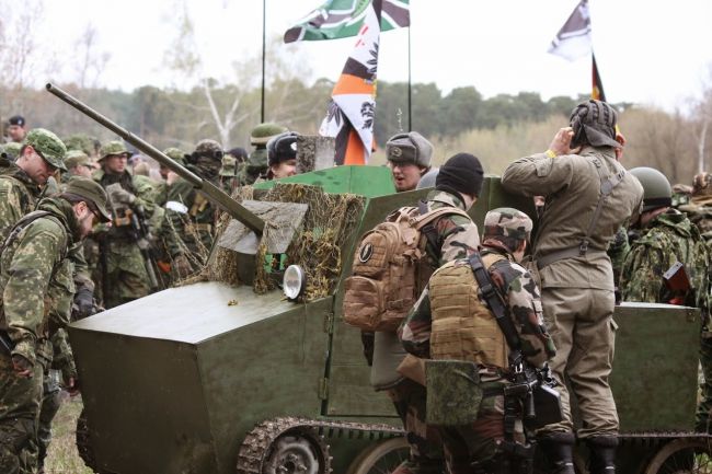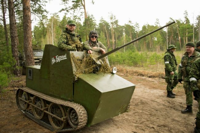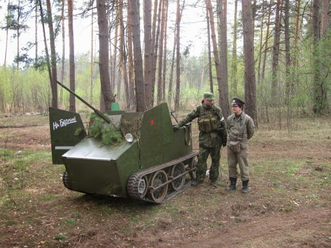 На фото мы увидим как участвует наш вездеход на реконструкции боев во время Великой Отечественной войны.