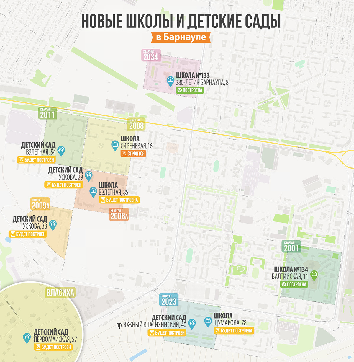 Где в Барнауле построят новые школы и детские сады. Инфографика