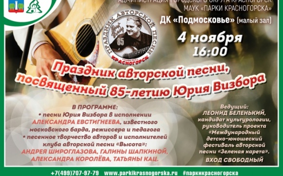 В понедельник, 4 ноября в МАУК ККДК «Подмосковье» состоится праздник авторской песни, посвященный 85-летию со Дня.