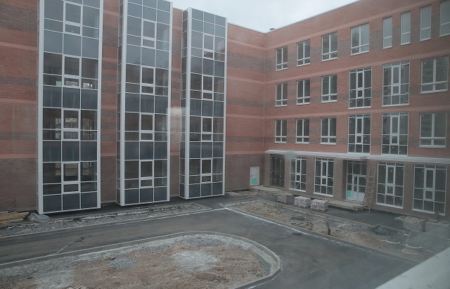 Четырехэтажное здание, рассчитанное на 1340 школьников, построено менее чем за два года.