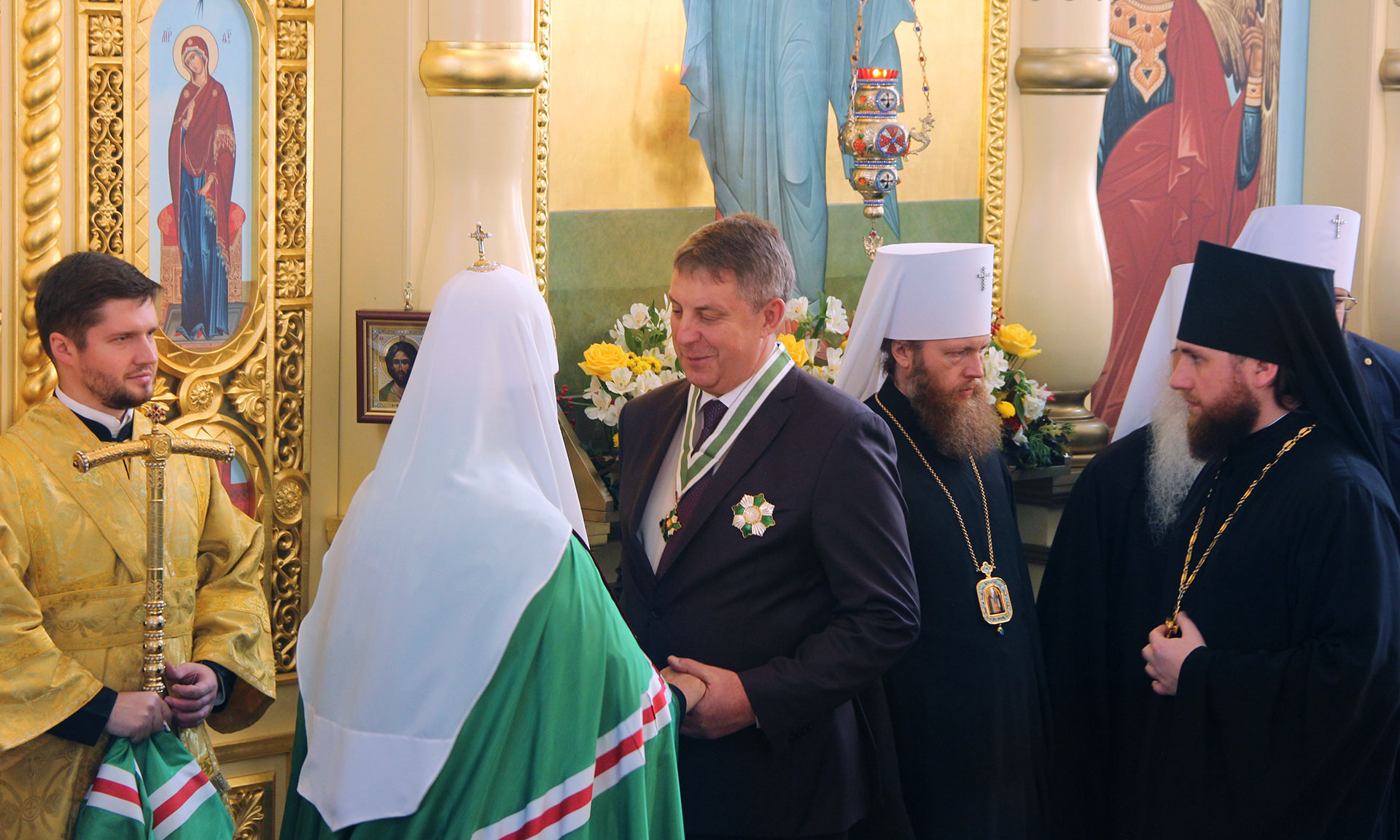 Многим высокопоставленным брянским товарищам по окончании богослужения раздали высокие церковные награды. Среди награжденных вполне ожидаемо оказался и брянский губернатор Александр Богомаз – как мирянин, «во внимание к помощи в строительстве Успенского собора».