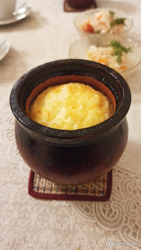 В первый день наш завтрак был таким вот- нам подали омлет, запеченный в горшочках-воздушный и очень нежный, я весь горшочек осилить не смогла даже: