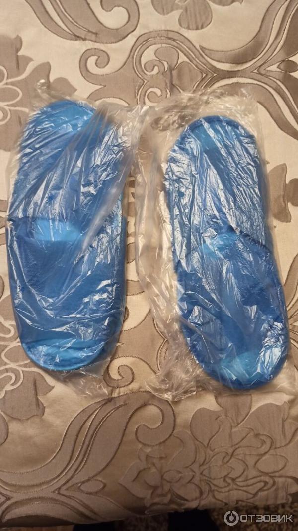 В одну из тумбочек нам положили тапочки, размер не был на них указан, но мой муж натянул-таки их даже на свой 45, хотя мне казалось, что они только до 42: